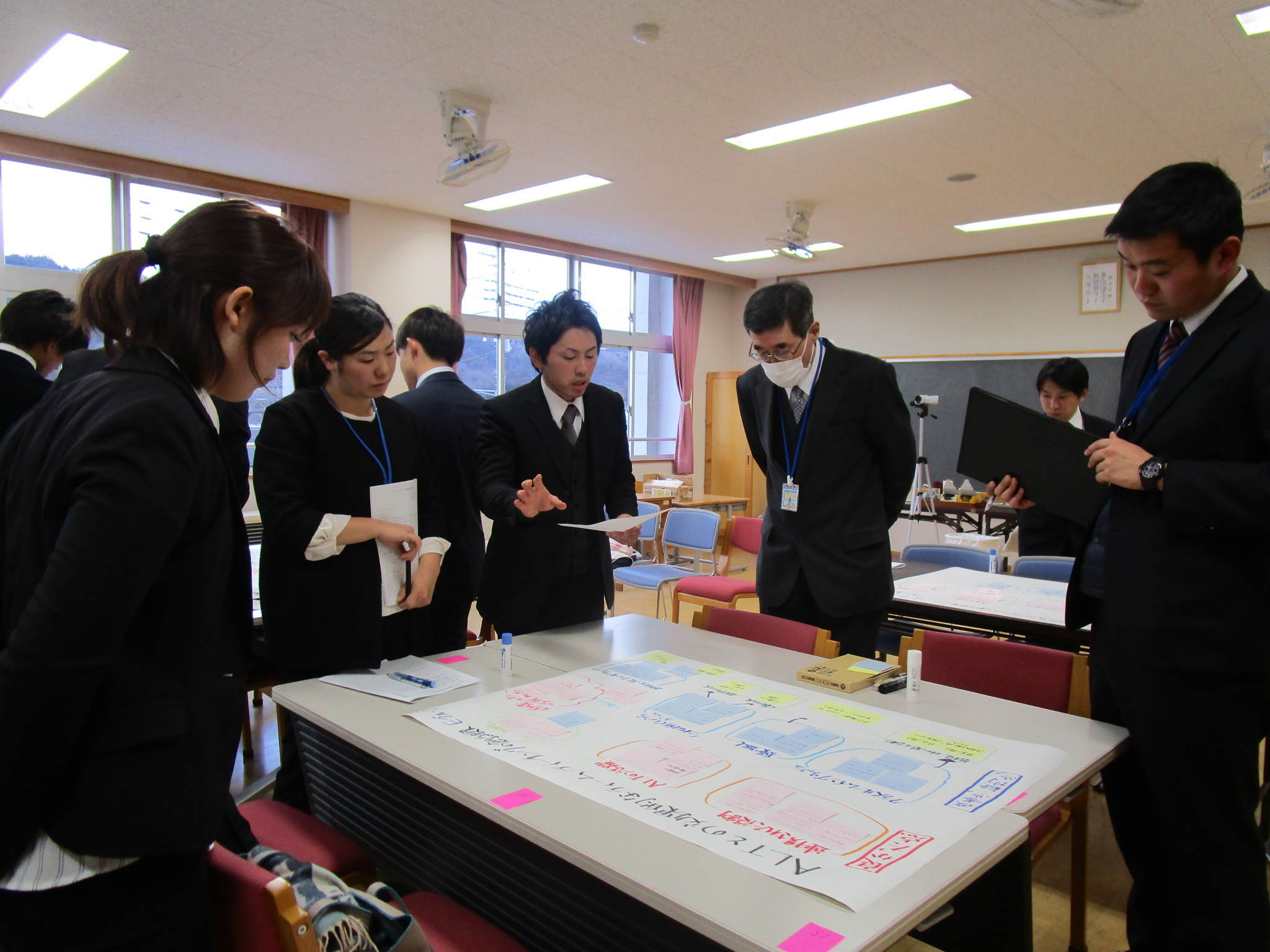 ワークショップ形式のグループワークで、授業の良かった点、課題点を出しないながら、よりよい指導方法についてのアイディアを出し合いました。参加した先生たちからはよりよい指導方法について積極的に意見が出され、話し合いが深まりました。その後ポスターセッション方式で各グループで話し合われた意見のアイディアを共有しました。